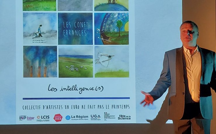 Dans le cadre de la Fête de la science, tous les élèves de seconde ont pu assister au spectacle Conf’errances de la compagnie Un Euro ne fait pas le printemps. Le comédien Heiko Buchholz et la dessinatrice Isabelle Raquin ont co-écrit le texte après tout