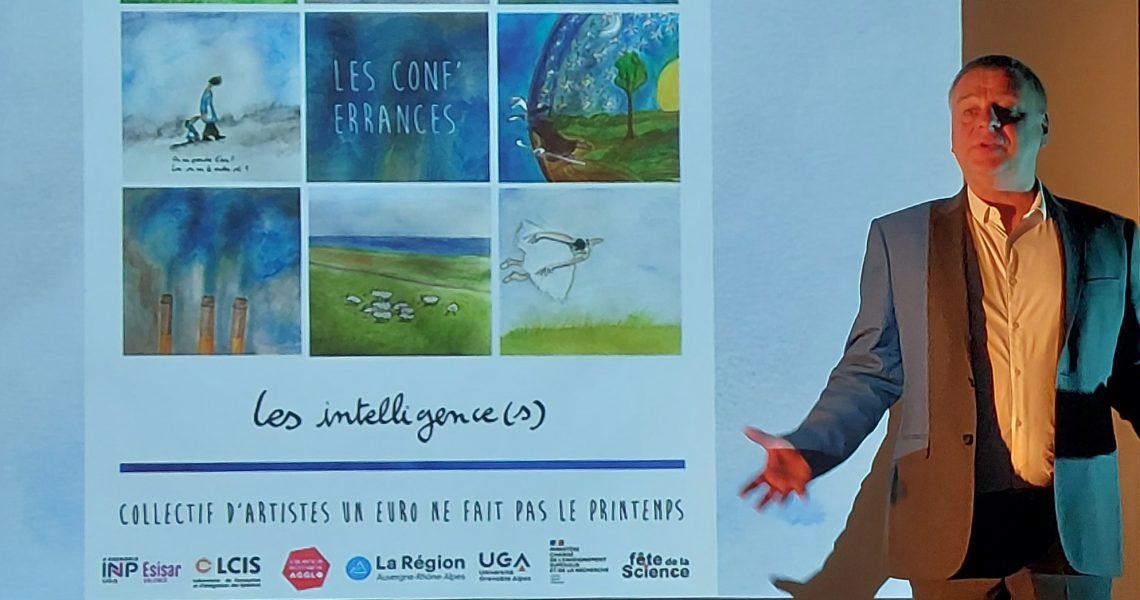Dans le cadre de la Fête de la science, tous les élèves de seconde ont pu assister au spectacle Conf’errances de la compagnie Un Euro ne fait pas le printemps. Le comédien Heiko Buchholz et la dessinatrice Isabelle Raquin ont co-écrit le texte après tout