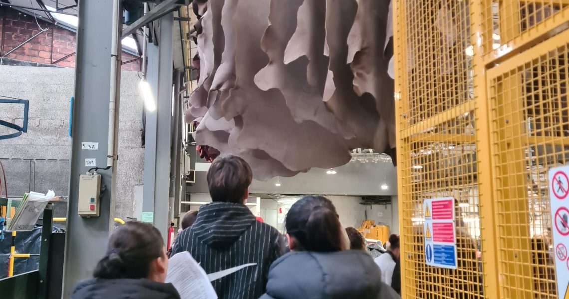 Dans le cadre du partenariat du lycée avec les Tanneries Roux, 7 étudiants de BTS MMCM1 ont présenté à la jeune équipe qui les encadre leurs projets d’habillement en cuir d’une rampe d’escalier, puis ils ont participé à un atelier sensoriel sur le cuir, très
